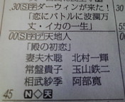 その、噂の大河ドラマ『天地人』も、友人数名がスカーンとハマッてしまってたりして、私の周りでは結構ホットなんですが、いかがなものでしょうか。私はモニカより阿部寛の方が信長に見えて仕方ありません。